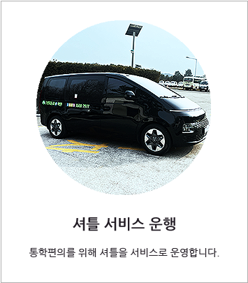 셔틀노선, 수강료 문자받기, 수강신청, 무이자카드 등 고객지원을 확인을 하실수 있습니다.